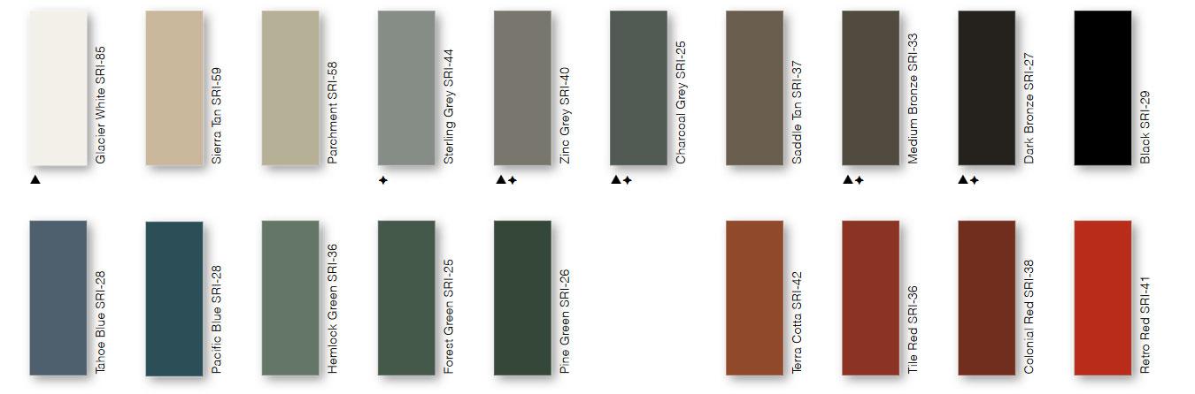 • 22 gauge Kynar 500 Painted Steel .029? (thickness prior to painting G-90 Galvanized or AZ-50: Select colors, see data sheet for details