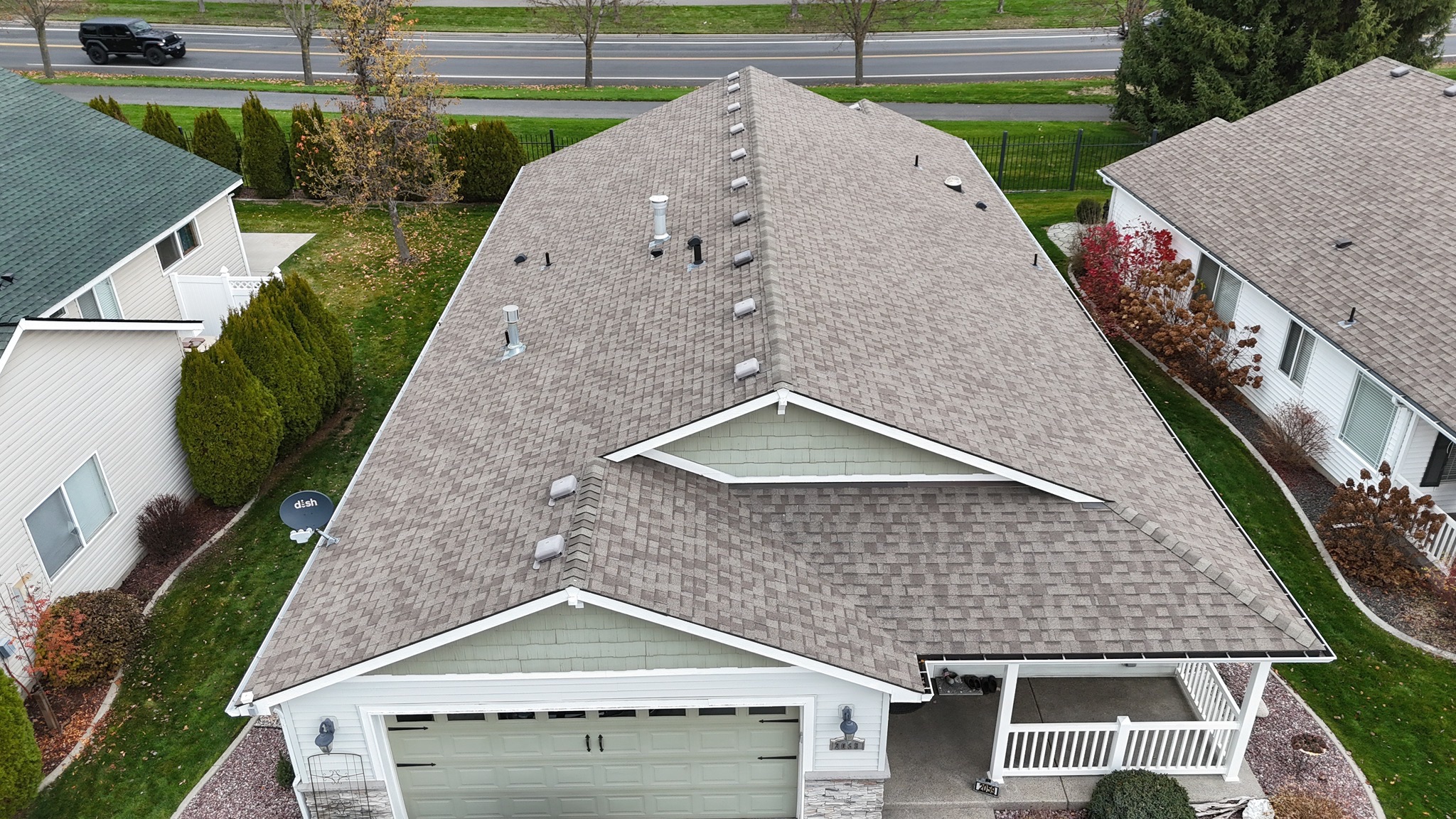 We used GAF Timberline HDZ shingles in the color Weatherwood for this roof replacement.